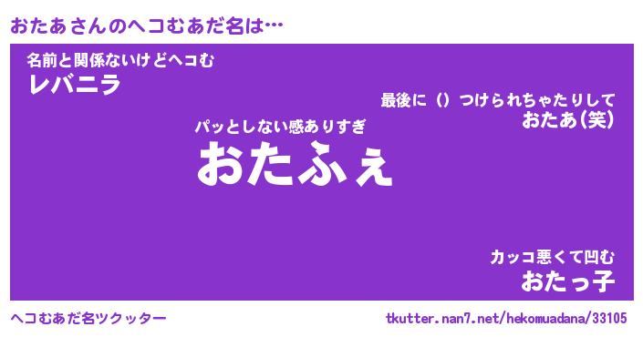 | 意味不明あだ名 | 『ペロリンおたあ』『おたあフォーエバー』 |