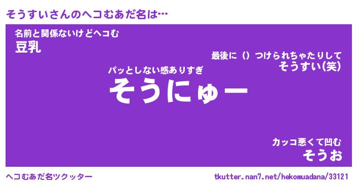 | ポケモン風あだ名 | 『ソウチュウ』『ソウスダネ』 |