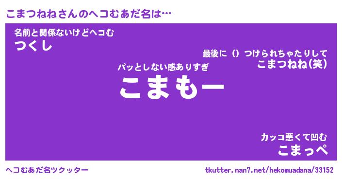 | ファンタジー風あだ名 | 『コマフェル』『エターナルコマツネネー』 |