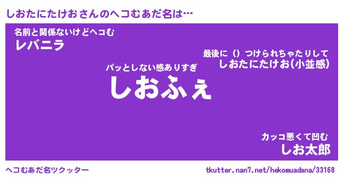 | 男性向けラノベタイトル風あだ名 | 『しおたにたけおの憂鬱』 |