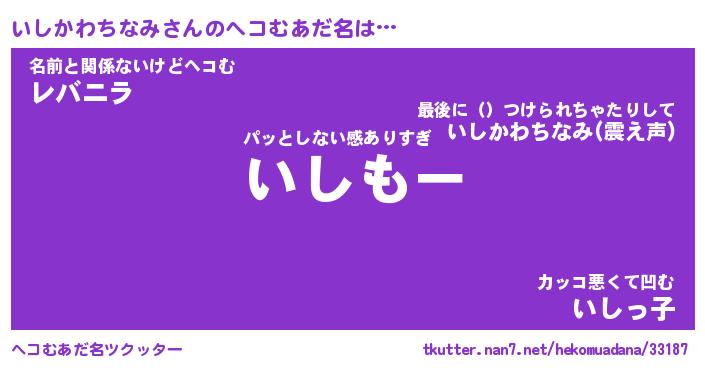 | ツイッター | いしかわちなみさんのツイッターID『katatsumuri_kun』 |