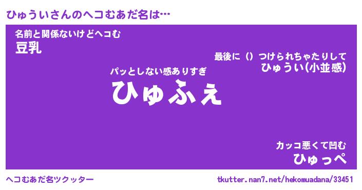 | ポケモン風あだ名 | 『ヒュチュウ』『ヒュウダネ』 |