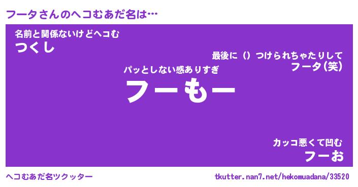 | ポケモン風あだ名 | 『フーチュウ』『フータダネ』 |