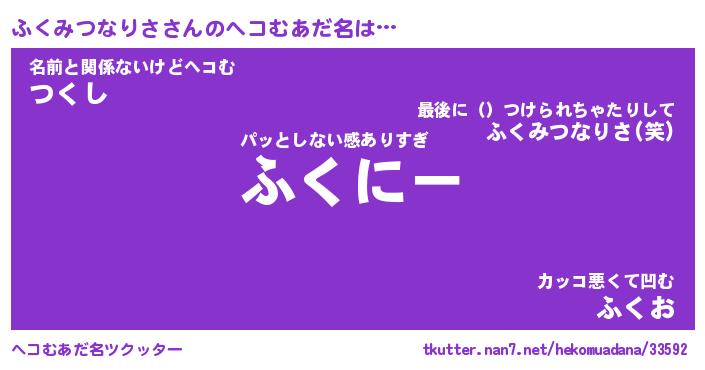 | 男性向けラノベタイトル風あだ名 | 『ふくみつなりさの憂鬱』 |