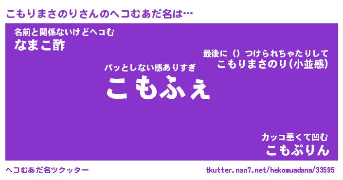 | 男性向けラノベタイトル風あだ名 | 『コモリマサノリアートオンライン』 |