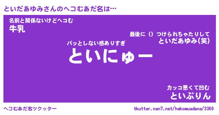 | 胡散臭い通販商品みたいなあだ名 | 『モテモテ間違いなし水晶球…その名も「といだあゆみ」』 |