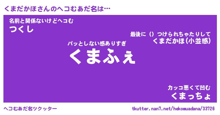 | ファンタジー風あだ名 | 『クマフェル』『エターナルクマダカホー』 |