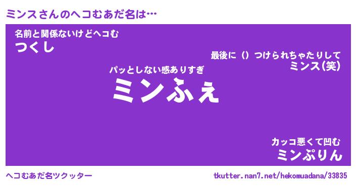 | ポケモン風あだ名 | 『ミンチュウ』『ミンスダネ』 |