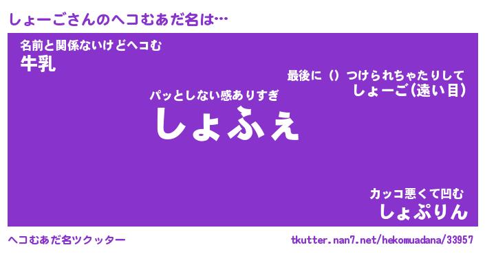 | 意味不明あだ名 | 『ペロリンしょーご』『永久保存しょーご』 |