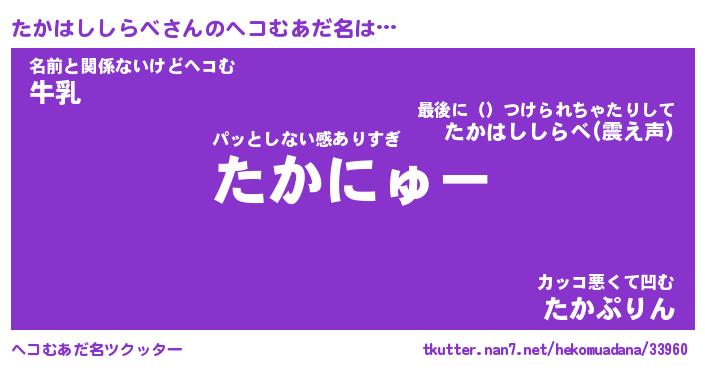 | 意味不明あだ名 | 『ペロリンたかはししらべ』 |