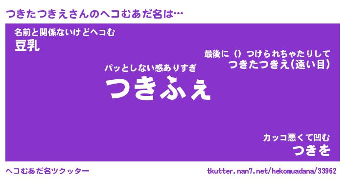 | ヒーロー風カッコイイあだ名 | 『スーパーツキタツキエ』『炎刃騎士ツキ』 |