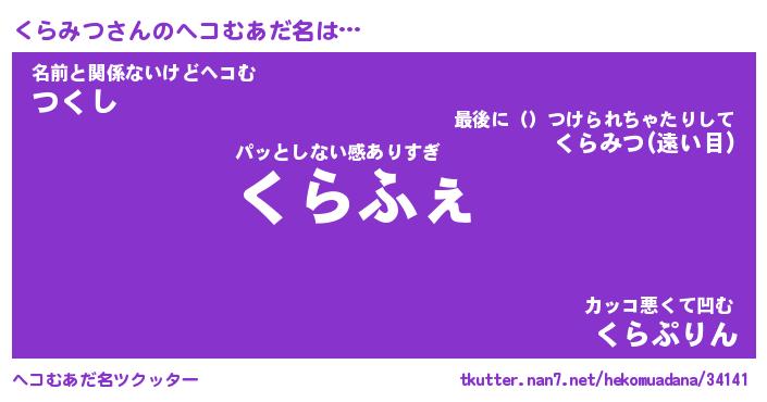 | 意味不明あだ名 | 『ペロリンくらみつ』『永久保存くらみつ』 |