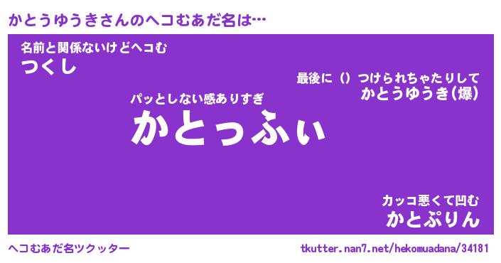 | 胡散臭い通販商品みたいなあだ名 | 『必ず成功する霊験あらたかなお札…その名も「かとうゆうき」』 |