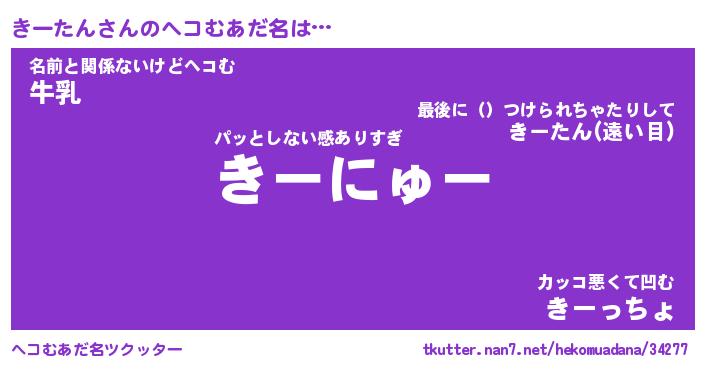 | 意味不明あだ名 | 『ペロリンきーたん』『永久保存きーたん』 |