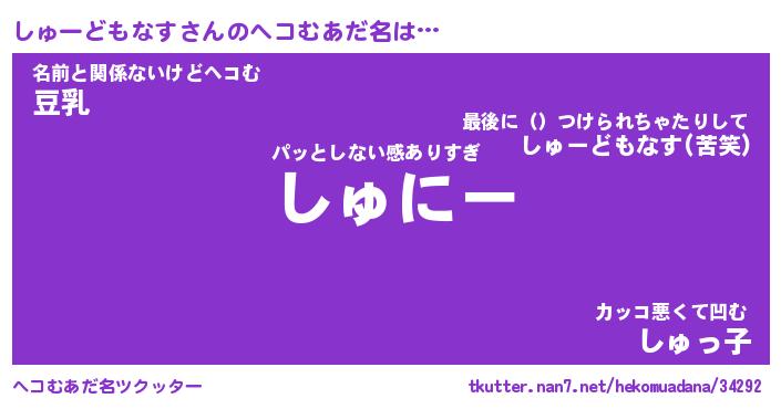 | 恥ずかしいあだ名 | 『プリティーしゅーどもなす』『しゅちん』 |