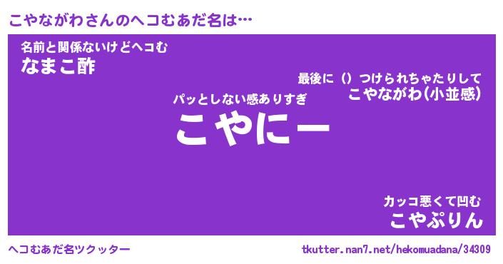 | 男性向けラノベタイトル風あだ名 | 『コヤナガワアートオンライン』 |