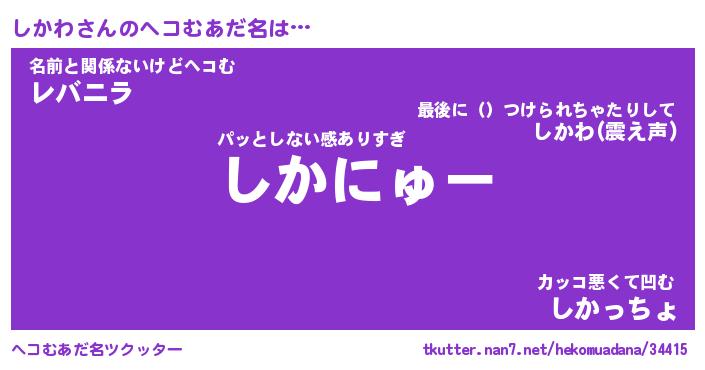 | 意味不明あだ名 | 『ペロリンしかわ』『しかわフォーエバー』 |