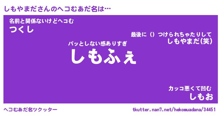 | 男性向けラノベタイトル風あだ名 | 『しもやまだの憂鬱』 |