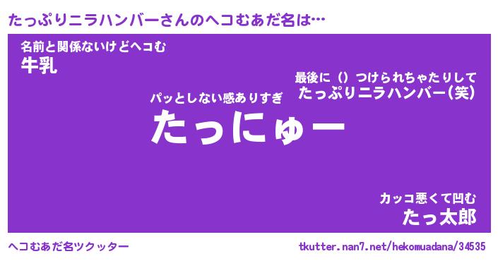| 男性向けラノベタイトル風あだ名 | 『タップリニラハンバーアートオンライン』 |