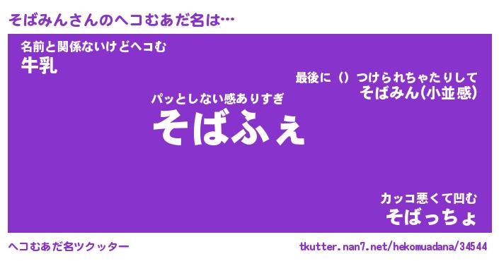 | ファンタジー風あだ名 | 『ソバフェル』『エターナルソバミンー』 |