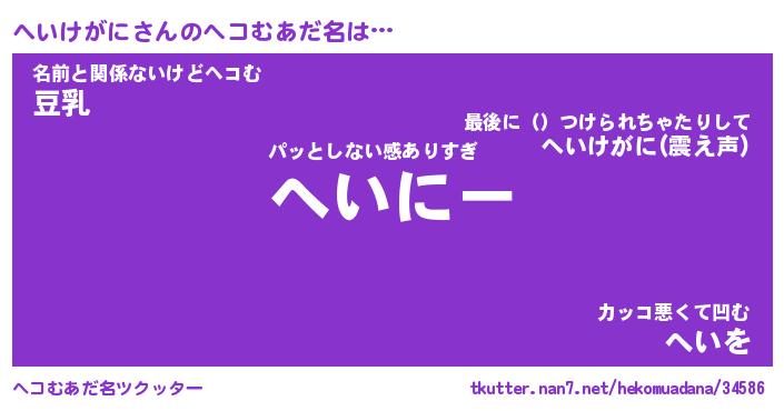 | 意味不明あだ名 | 『ペロリンへいけがに』 |