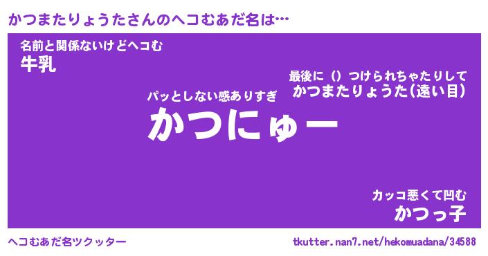 | 男性向けラノベタイトル風あだ名 | 『かつまたりょうたの憂鬱』 |
