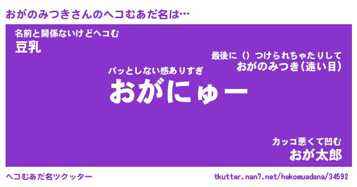 | 男性向けラノベタイトル風あだ名 | 『おがのみつきの憂鬱』 |