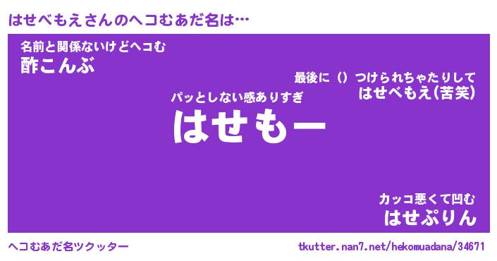 | 男性向けラノベタイトル風あだ名 | 『ハセベモエアートオンライン』 |