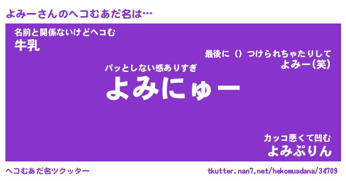 | 男性向けラノベタイトル風あだ名 | 『よみーの憂鬱』 |