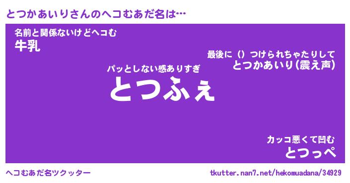 | 恥ずかしいあだ名 | 『プリティーとつかあいり』『とつっちょ』 |