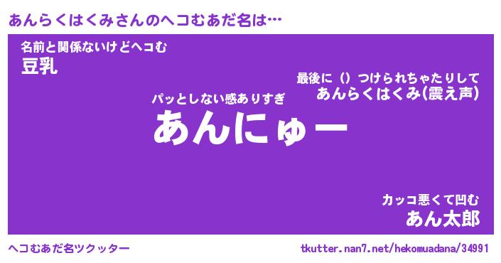 | 恥ずかしいあだ名 | 『プリティーあんらくはくみ』『あんちん』 |