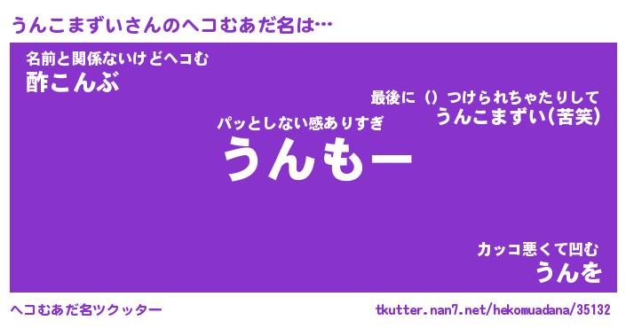 | 男性向けラノベタイトル風あだ名 | 『うんこまずいの憂鬱』 |