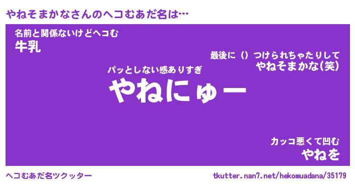 | 自動車の名前っぽいあだ名 | 『ヤネティマ』『ヤクア』『デミヤ』 |