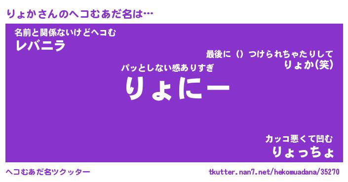 | ヒーロー風カッコイイあだ名 | 『スーパーリョカ』『ウルトラりょかマン』 |