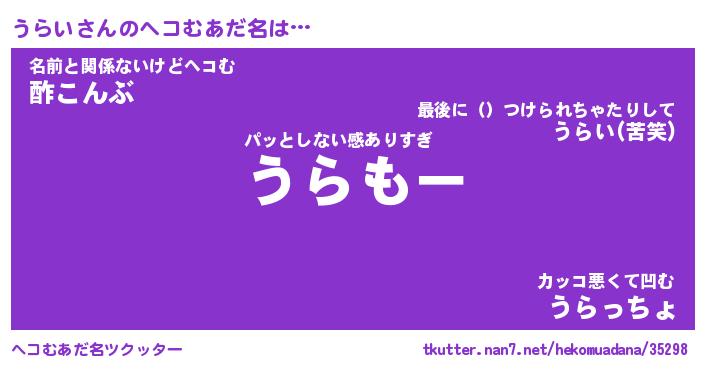 | 意味不明あだ名 | 『ペロリンうらい』『うらいフォーエバー』 |