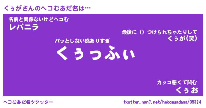 | ヒーロー風カッコイイあだ名 | 『スーパークゥガ』『ウルトラくぅがマン』 |