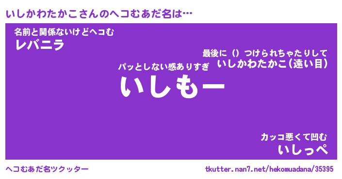| 恥ずかしいあだ名 | 『プリティーいしかわたかこ』『いしちん』 |