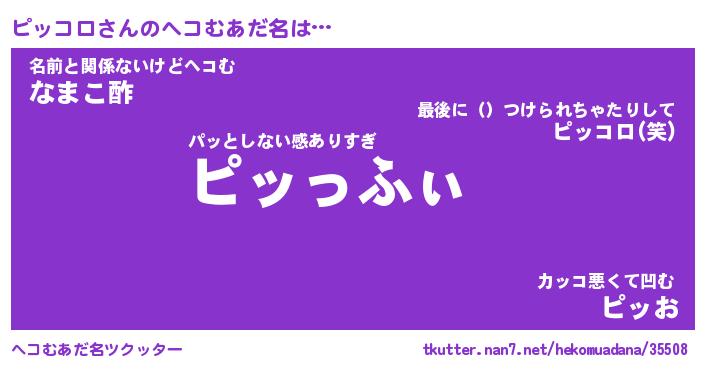 | 男性向けラノベタイトル風あだ名 | 『ピッコロの憂鬱』 |