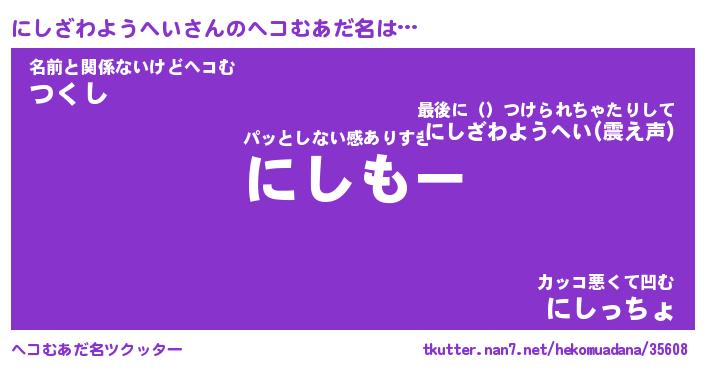 | ポケモン風あだ名 | 『ニシチュウ』『ニシザダネ』 |