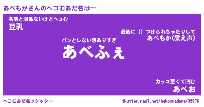 | 意味不明あだ名 | 『ペロリンあべもか』『永久保存あべもか』 |