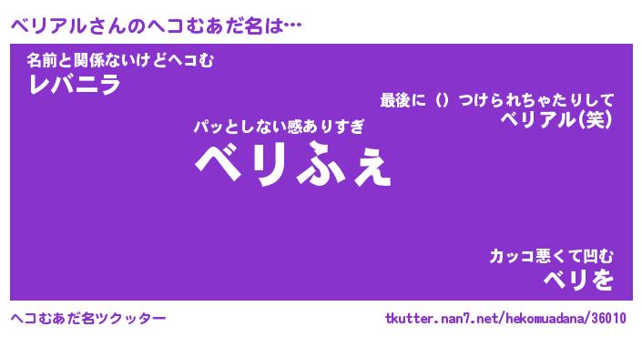 | 男性向けラノベタイトル風あだ名 | 『ベリアルの憂鬱』 |