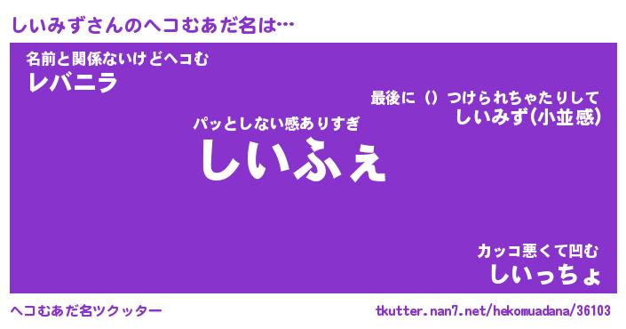 | 意味不明あだ名 | 『ペロリンしいみず』『永久保存しいみず』 |