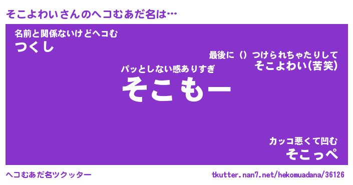 | ファンタジー風あだ名 | 『ソコフェル』『エターナルソコヨワイー』 |
