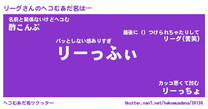 | 男性向けラノベタイトル風あだ名 | 『リーグの憂鬱』 |