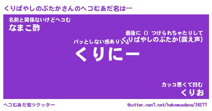 | 男性向けラノベタイトル風あだ名 | 『くりばやしのぶたかの憂鬱』 |