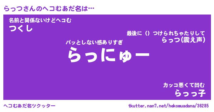 | 男性向けラノベタイトル風あだ名 | 『らっつの憂鬱』 |