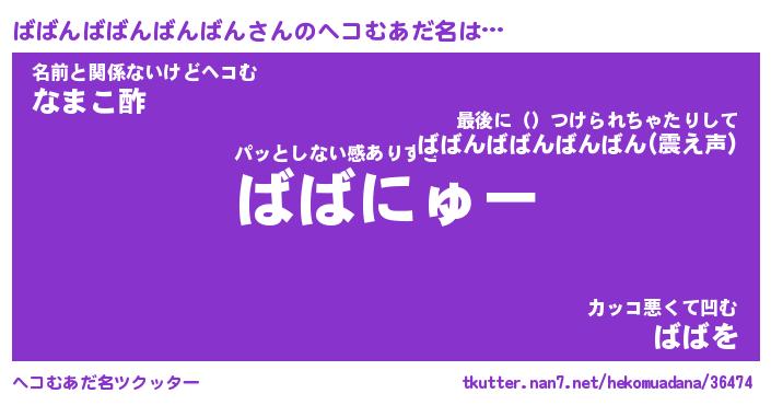 | ポケモン風あだ名 | 『ババチュウ』『ババンダネ』 |