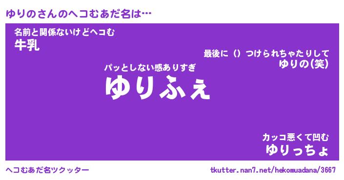 | ファンタジー風あだ名 | 『ユリフェル』『エターナルユリノー』 |
