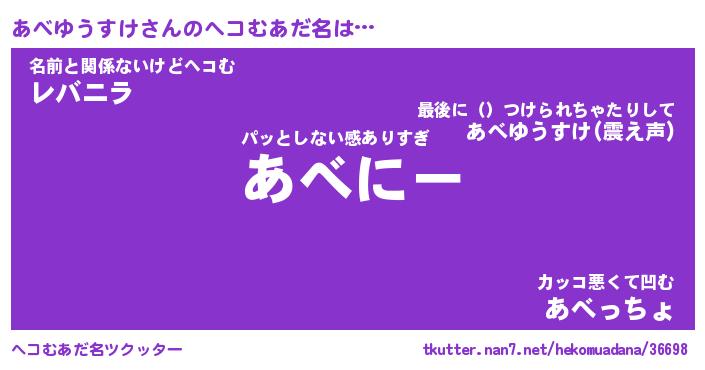 | 恥ずかしいあだ名 | 『プリティーあべゆうすけ』『あべっちょ』 |