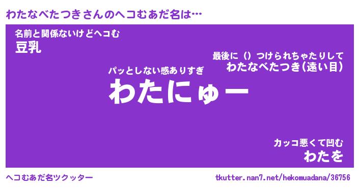 | ポケモン風あだ名 | 『ワタチュウ』『ワタナダネ』 |